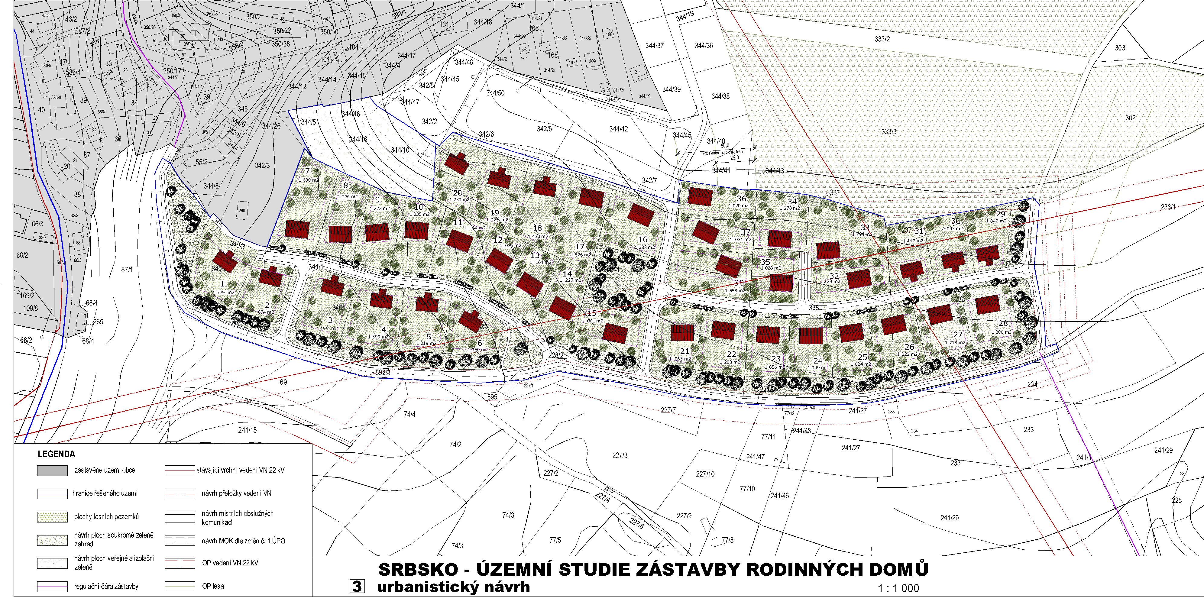 Koncepce urbanistického řešení vycházela z návrhu zástavby v liniích přizpůsobených přírodnímu charakteru okolí, tzn. prostorová regulace staveb sleduje terénní linie, vrstevnice, linii lesa. Podstatné pro  umístění staveb rodinných domů bylo zejména jejich krajinné a prostorové působení z dálkových pohledů z protilehlé hrany údolí nad Berounkou, z území NPR Koda.